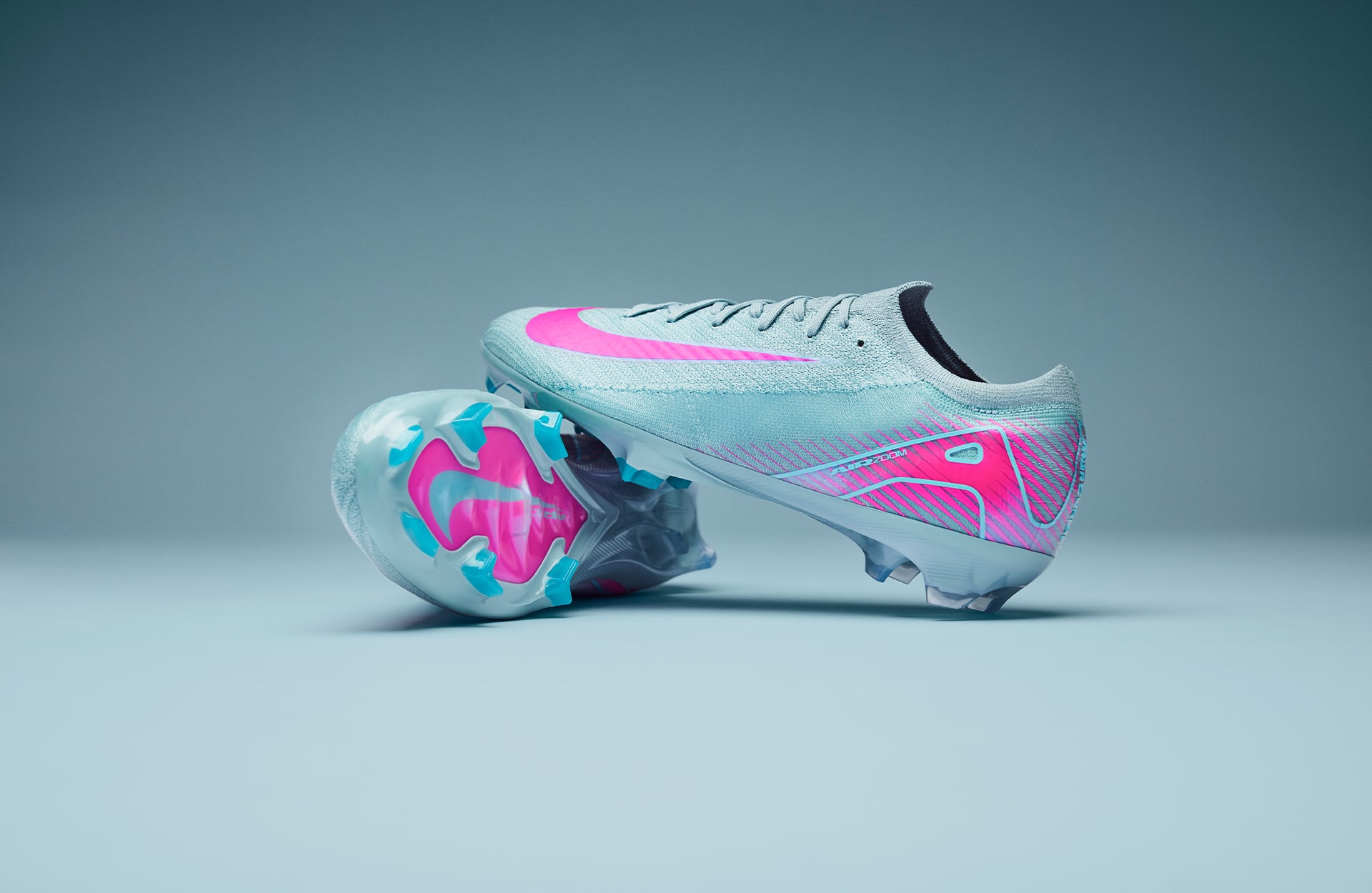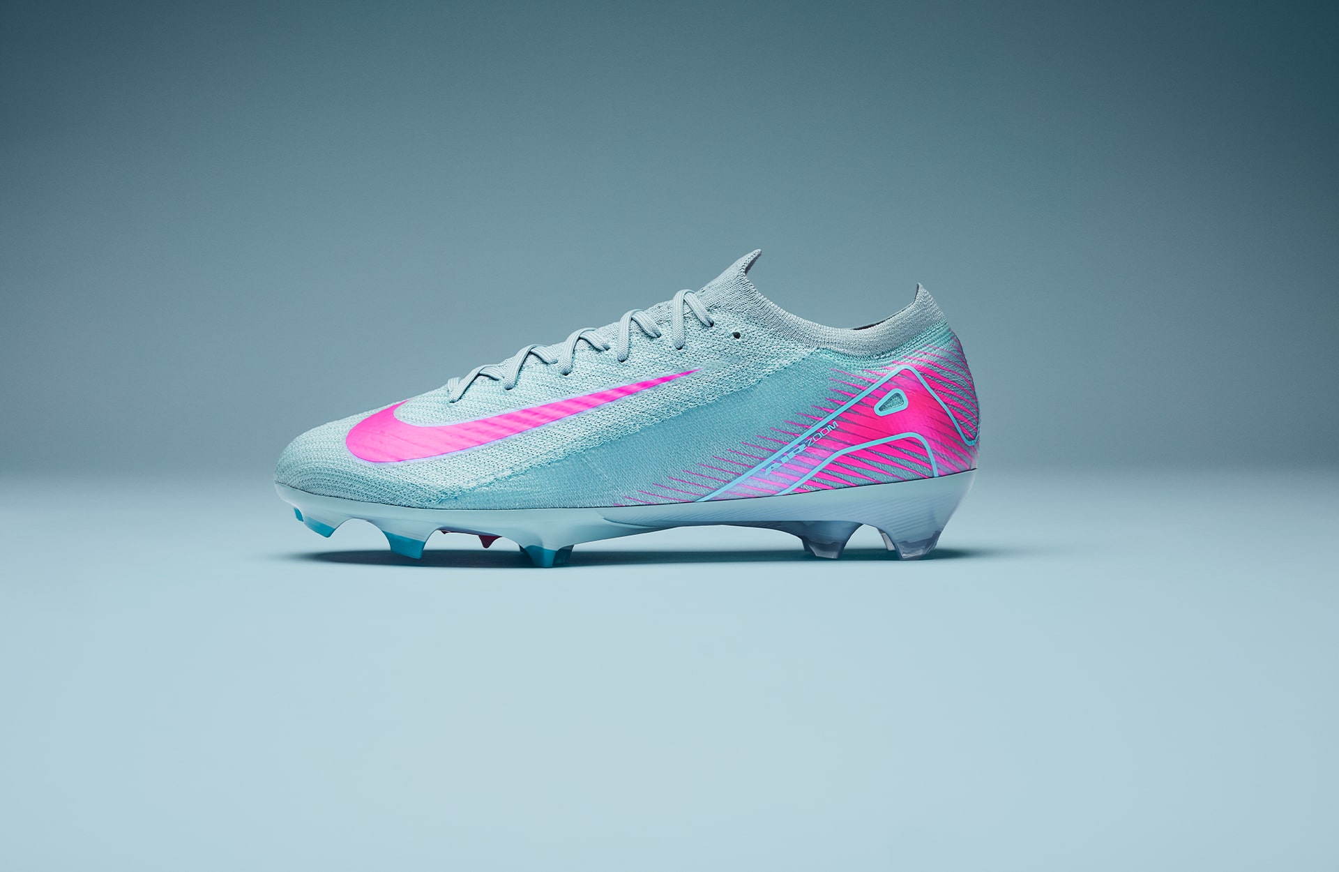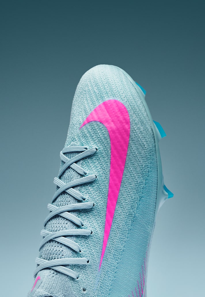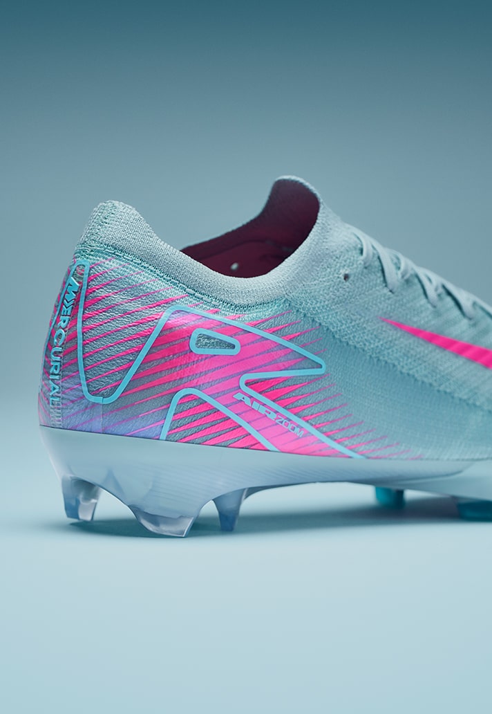 Arriving in a “Ocean Cube/Pink Blast” colourway, the Nike Air Zoom Mercurial sees a pastel blue shade covering the entirety of the Gripknit upper, whilst vivid pops of pink feature across detailing and branding. The “Ocean Cube” choice of colour takes inspiration from shades the brand have previously used on popular trainers in the past. The ‘swoosh’ and ‘Air’ branding models bright pink, elevating the colourful aesthetic of the boot. This boot would look so clean with that Atlético Madrid Away shirt…