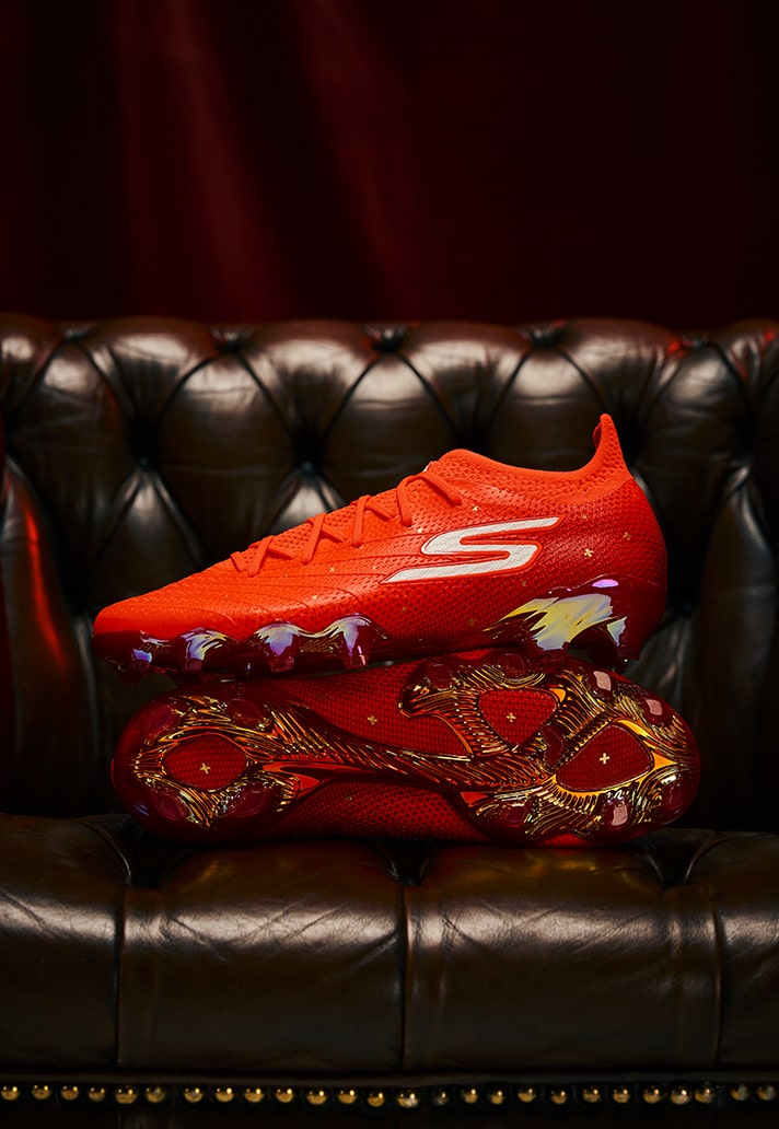 Skechers have gifted Bayern Munich and England Star Harry Kane with a special edition boot celebrating a record-breaking season. Inspired by his success at Bayern, the limited SKX boot fashions a lucid red with subtle golden features as nods to his goal-scoring record.
