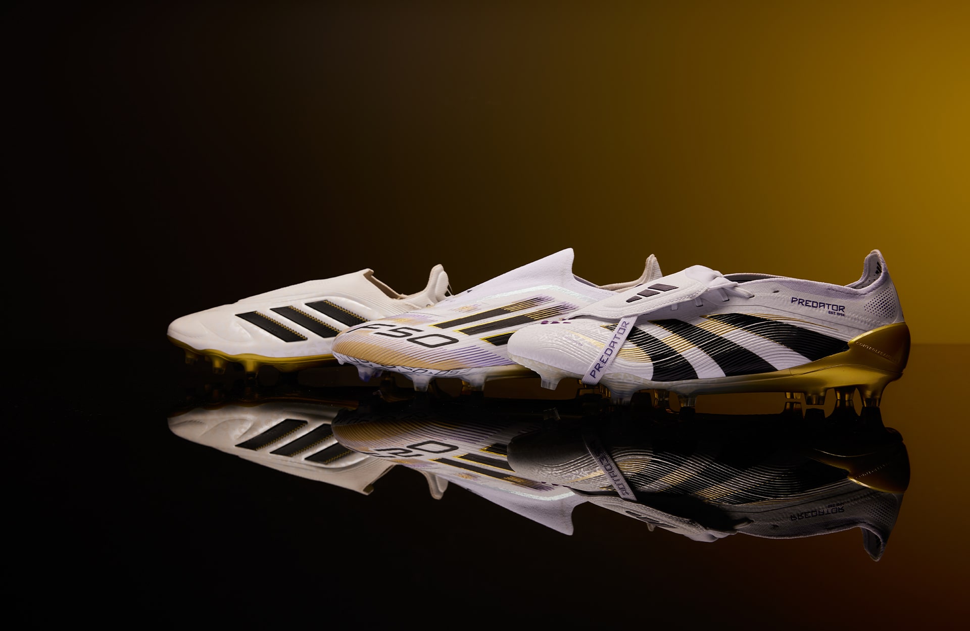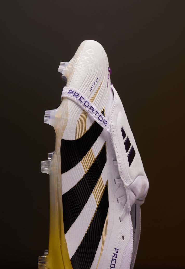 Each silo features a crisp white base, contrasted by black Three Stripes cascading down the sides – timeless. Luxurious gold detailing adds a premium look to each boot, featuring across finer detailing as well as a golden metallic soleplate. At a closer look, subtle purple tones add depth to the designs, particularly across the F50 silo where a gradient style pattern engulfs the toe of the boot. The Copa silo features repeated 'Copa' branding across the upper – a new feature for this boot which we have not seen adidas experiment with before. All three silo's drop in laced and laceless versions, whilst the Pred also arrives with the popular Full Tongue.