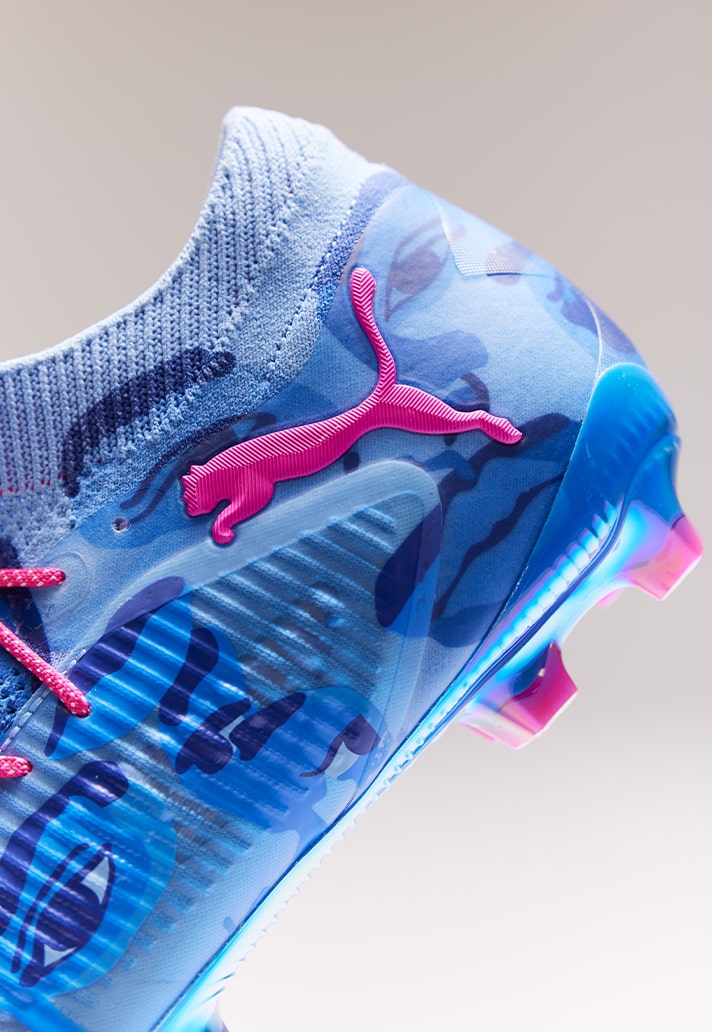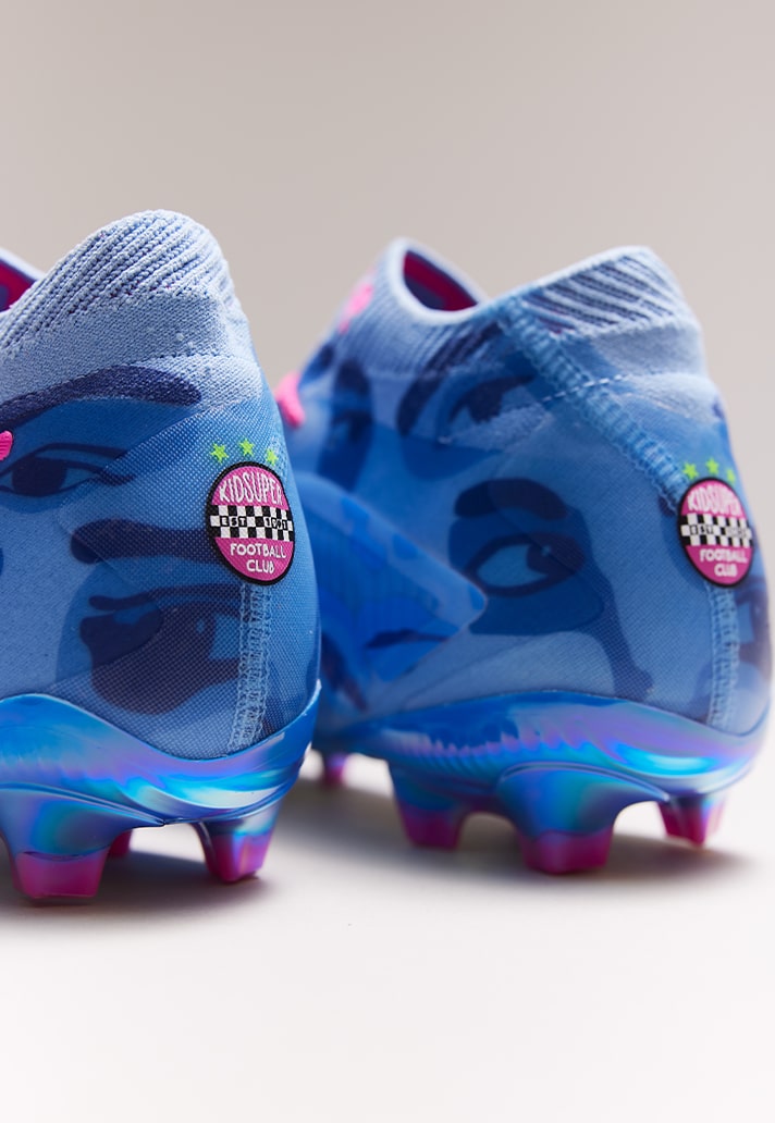 Each silo follows it’s own set of rules. No colour or design patterns, just pure vibes. Let’s start with the popular Future silo. A boot that embodies vision, creativity and passion, and that’s exactly what PUMA and KidSuper used as inspiration for this. With vision sitting at the heart of the design, those renowned eyes, seen on previous KidSuper pieces, shape this work of art. Playing with shades of blues and pinks, the Future is elevated with expressive tones and a bold aesthetic – ready to make waves on the feet of some superstars during the Club World Cup this summer.