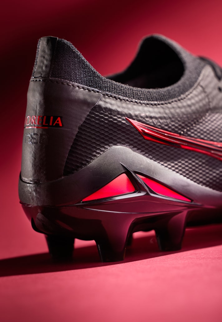 Inspired by volcanic gravel and radiant ruby stones, the Mizuno Shadow Gem Pack is a visual metaphor for strength carved from nature and elegance born under pressure. Cloaked in an intense matte black, each boot in the pack whispers menace. The Runbird logo and outsole details glint like embedded gems – subtle yet potent, like pressure-forged stones waiting to strike. This isn’t just about looks though; it’s about a mindset. The kind of mentality that thrives in the dark and lets the football do the talking.