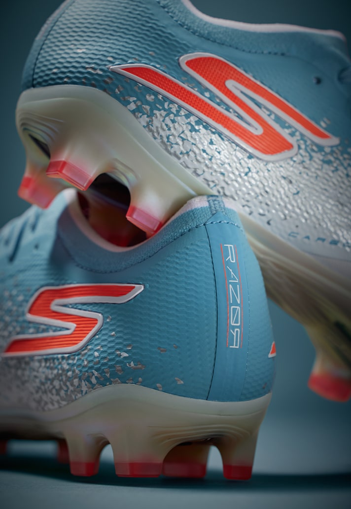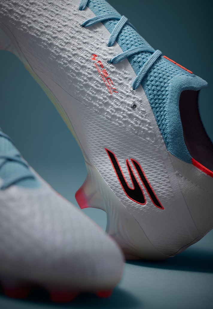 With the all-new SKX_2 lining up alongside the speed-focused Razor 1.5, the Skechers ‘Control Pack’ lands in a unified “White/Teal/Coral” colourway, but it’s clear who the main character is in this story. With the SKX_2, Skechers have taken everything they’ve learned from their entry into the boot world and channelled it into a weapon of ultimate control. Built for the modern playmaker, this is a boot for the player who wants the ball at their feet and the game on a string. It’s aggressive, agile, and designed for moments when precision becomes the difference between highlight reel and hindsight.