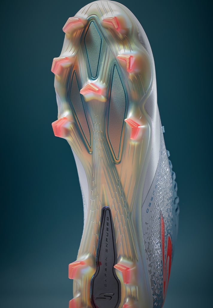 Let’s talk tech. The SKX_2 features HYPER BURST PRO cushioning, a next-gen foam known for its elite energy return and featherlight feel. Skechers have built their name on comfort – they spend more money on insoles than any other brand in the game, and it shows. Slide your foot into the SKX_2 and you’re immediately met with a performance-driven hug: snug but not restrictive, responsive but not rigid. On top, the Performance FitKnit upper has been refined for a more tailored, adaptive fit. Strategic lacing and internal silicon elements work together to lock the foot down, giving players that essential stability without sacrificing flexibility. Whether you’re shifting into space or snapping a pass between the lines, the Precision Strike Control (PSC) detailing on the forefoot ensures confident contact and cleaner strikes.