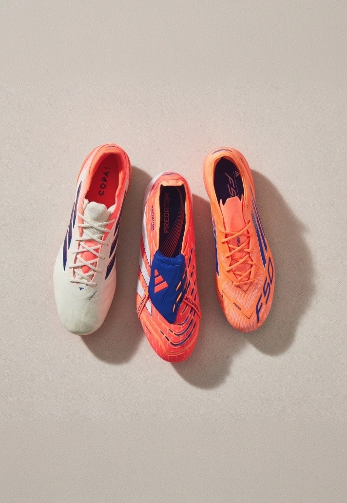 adidas turn the temperature up as 2025 rolls on, unveiling the ‘Coral Blaze’ pack – a unified look across their three leading silos: Predator 25, F50, and Copa Pure 3.