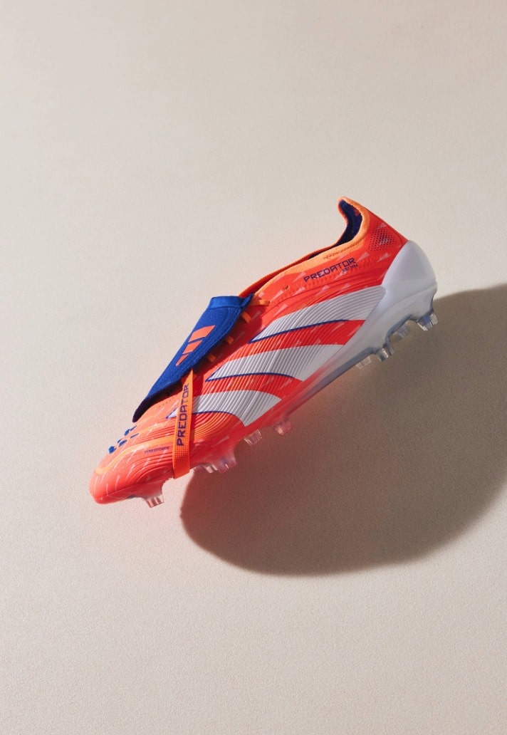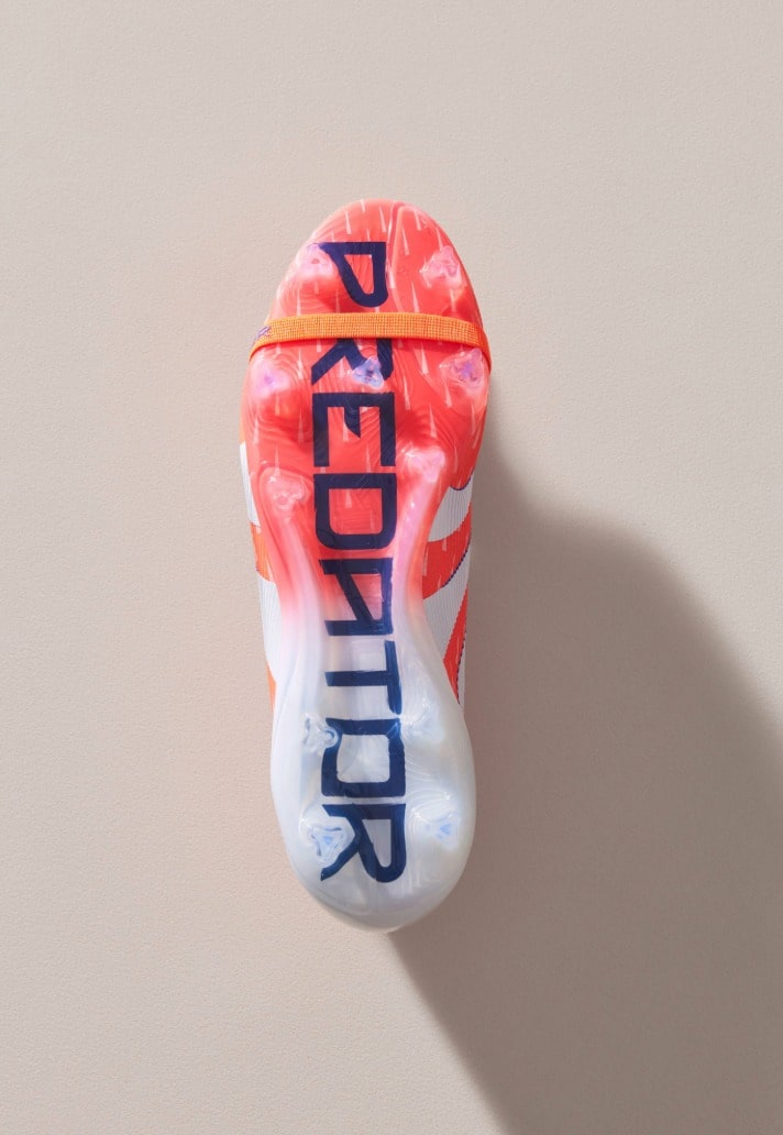Aesthetically, the pack leans into refinement rather than flash. Each silo carries its own spin on the theme, letting personality flow through the palette. The Predator 25 is dominated by adidas’ ‘Signal Coral’, firing a bold orange punch through the upper and paired with white and deep blue detailing on that fold over tongue – a colourway built to catch the eye and complement the boot’s aggressive design lines.