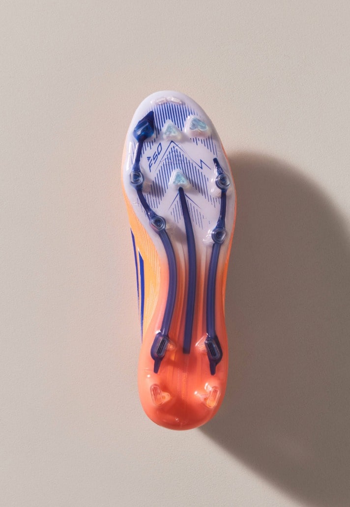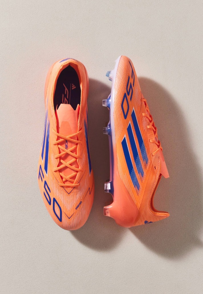The F50 takes on a modern speed-driven identity in Beam Orange, balanced with lucid blue and white touches. Lightweight and rapid, it carries the energy of the colourway like a surge forward on the counter.