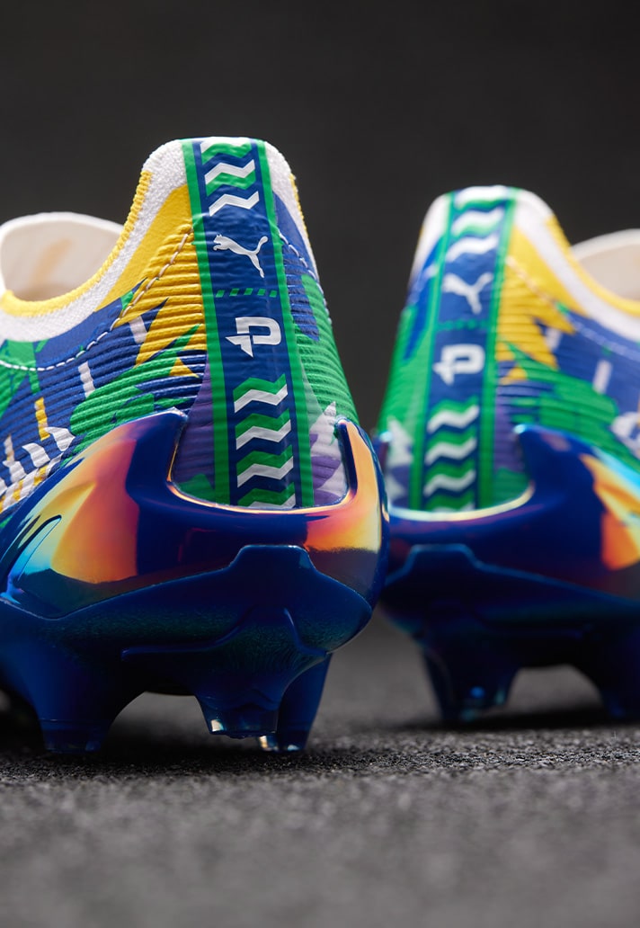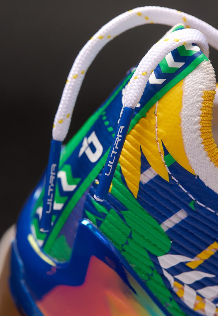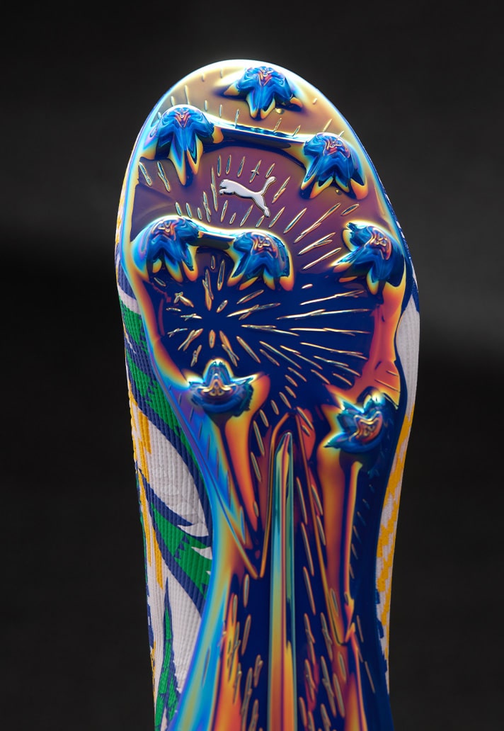 This latest Ultra is a visual rush. Every inch of it is wired with the city’s pulse. The upper bursts with a chaos of colour, yellow, blues, greens, and whites, in traditional Brazil fashion. Inspiration has been drawn from all over the city, from the traditional São Paulo flag to the unique patterns that fill the pavements. The woven-style print dances across the boot in a rhythm that feels alive, like asphalt and samba colliding at full speed.