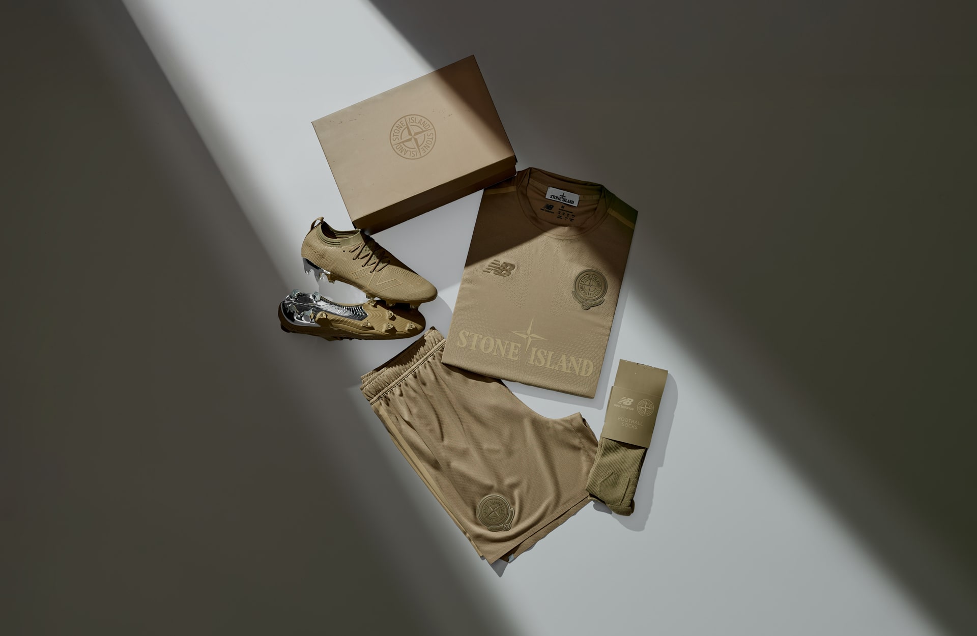 Following the earlier tease, the New Balance x Stone Island partnership returns to football with the confidence of two labels that know exactly what they bring to the table: New Balance with its on-pitch engineering, Stone Island with its obsessive material research. The result? A boot and kit that speak the same language — one of technical clarity, functional precision, and unmistakable aesthetic control.