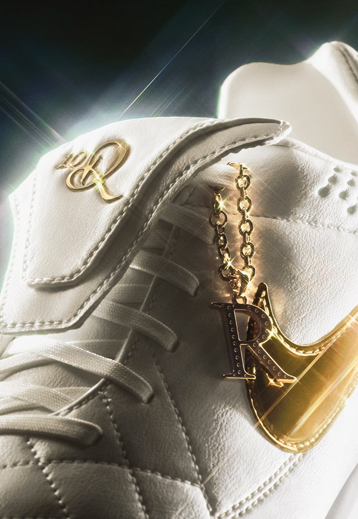 This remake celebrates that time. It revives the same aua but updates it with some modern tech because innovation never lacks at Nike. The same pristine white canvas, the same golden fade wrapping around the boot, and the same 10R stamp sitting on the fold over tongue. Yes, the tongue is back.