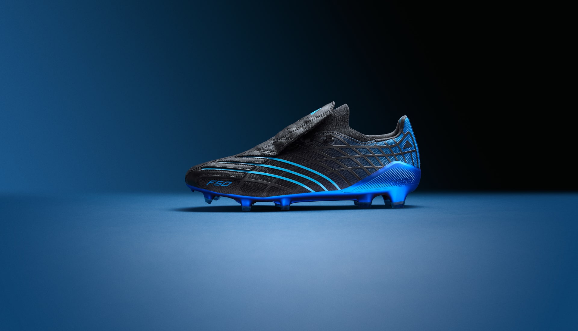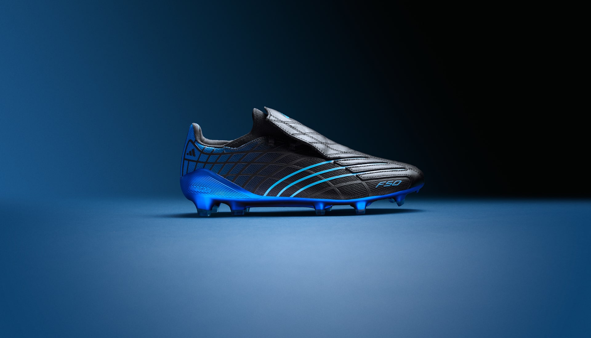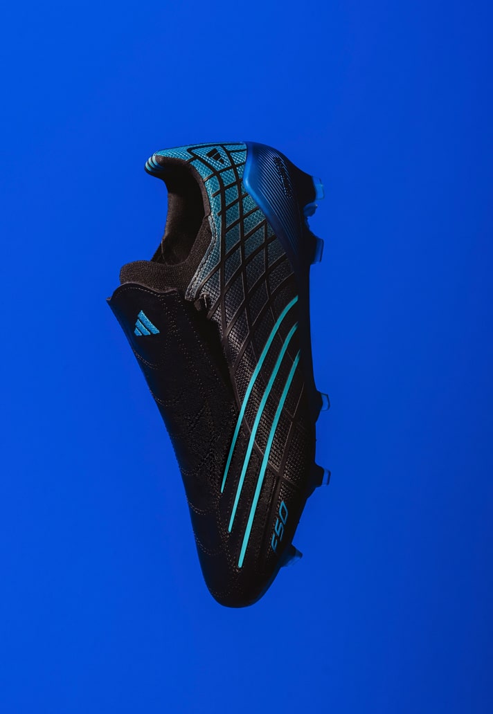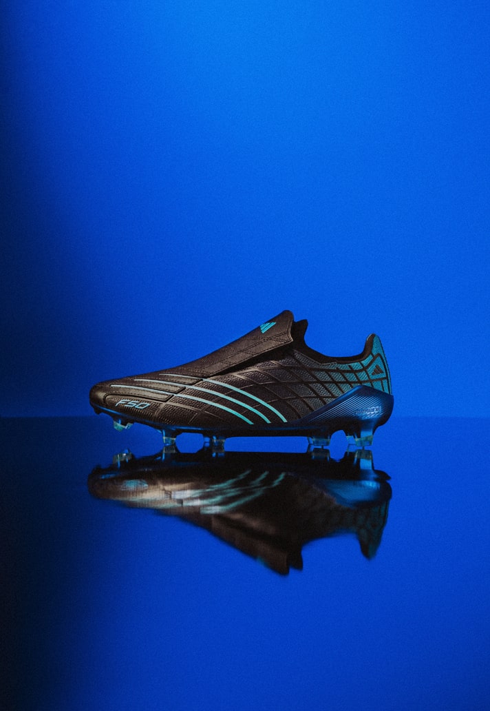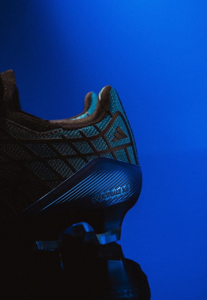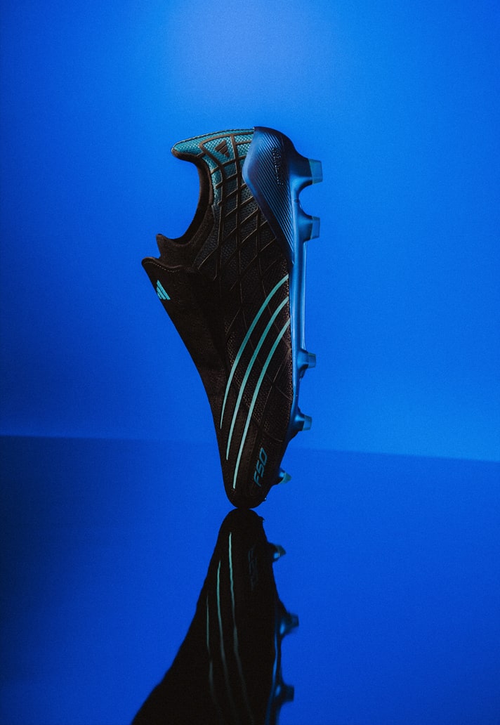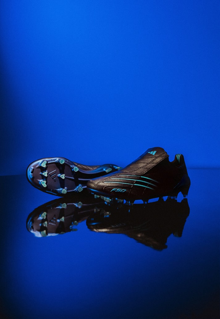 For the anniversary drop, adidas keeps the DNA intact but turns the performance dial forward. The black upper, cut from a blend of smooth leather and advanced synthetics, delivers that unmistakable F50 feel while meeting the demands of today’s game. The electric blue graphic lines streaking across the sides remain as striking as ever, sharpening the boot’s aerodynamic profile and paying tribute to its reputation as a pure speed weapon.