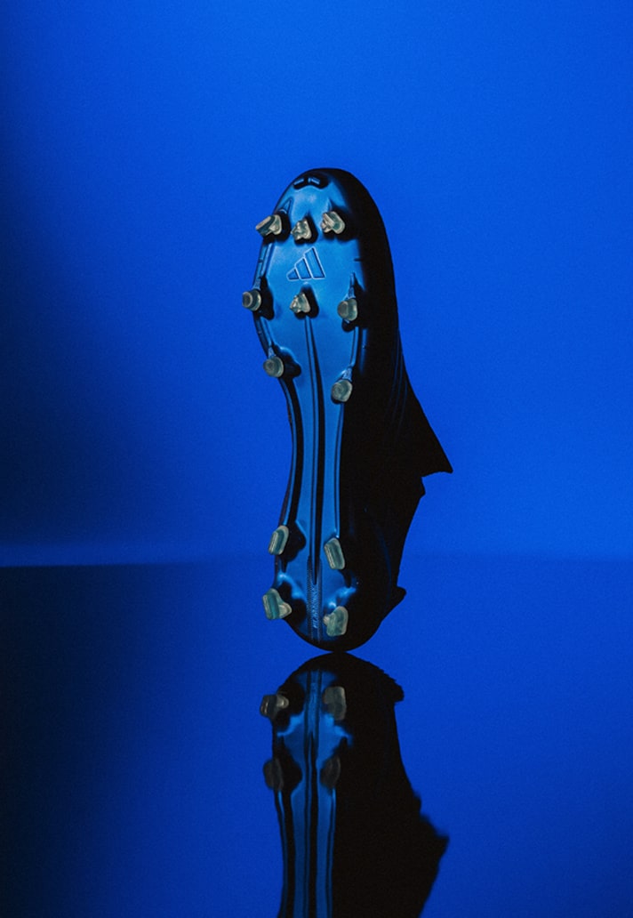 Then there’s the detail that made the Spider instantly recognisable: that iconic lace-over tongue. Still sleek. Still clean. Still one of the best pieces of boot design the industry has ever produced. Underfoot, a shimmering blue soleplate updates the legacy with modern traction and responsiveness – a proper fusion of past and present.