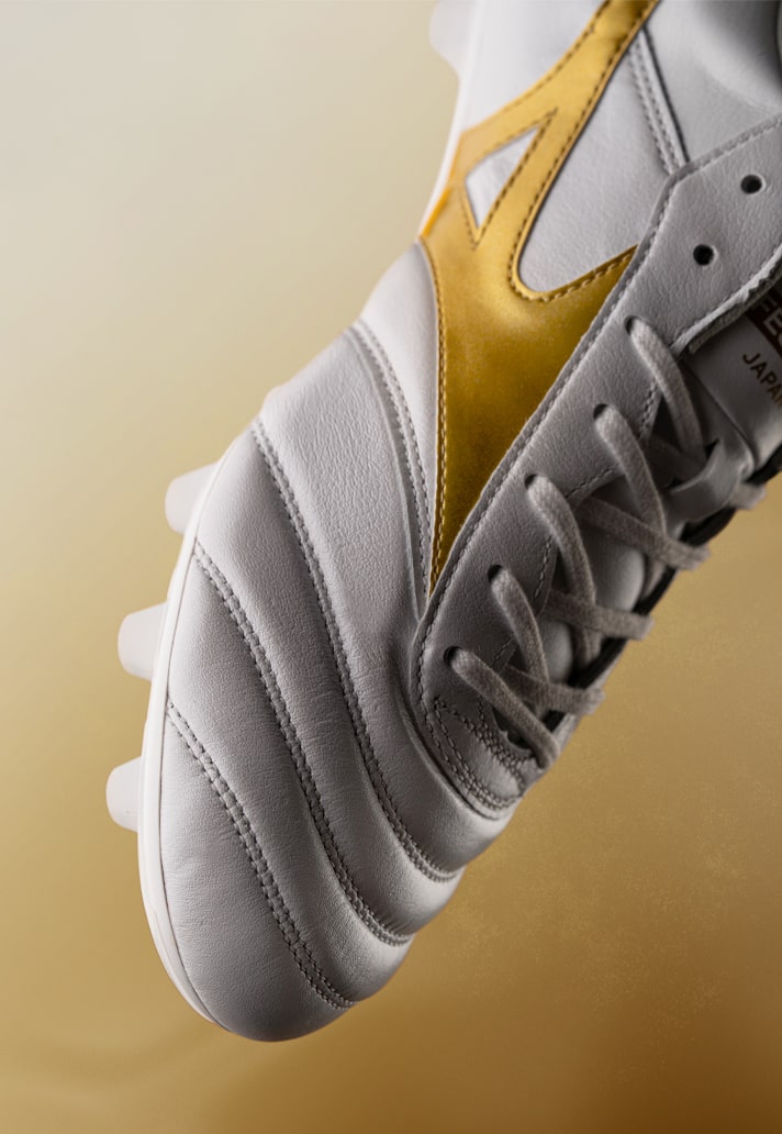 Housing the Morelia Neo IV β Made In Japan and the Morelia II Made In Japan, the 'Bright Gold' pack serves a beautifully crisp, regal mix of white and gold — a palette that’s been having something of a moment, most notably with Nike’s recent Tiempo ‘Touch of Gold’ rerelease. But it's not like Mizuno don't have a history with this combo either, with the ‘Victory Gold’ pack from 2020 springing readily to mind. Only this time, it hits with a sharpened sense of heritage and high-performance intent.