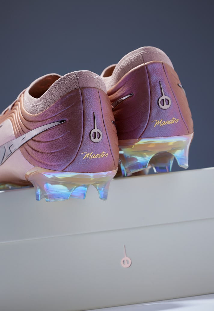 This is a full character rewrite. The Tiempo Maestro is a boot built for creators, entertainers and risk takers. A tool for those who see passes others don’t, who bend games to their imagination rather than brute force. As part of Nike’s continued reinvention of the iconic line, the Maestro leaves traditional leather behind in favour of a futuristic synthetic construction, marking a clear departure from the Tiempo’s historic DNA while keeping its soul intact. The limited launch colourway (officially “Mtlc Red Bronze/Mtlc Rose Gold”) doubles down on that modern direction, wrapping the boot in an elegant metallic finish that shimmers between bronze and rose as the light changes across the pitch.