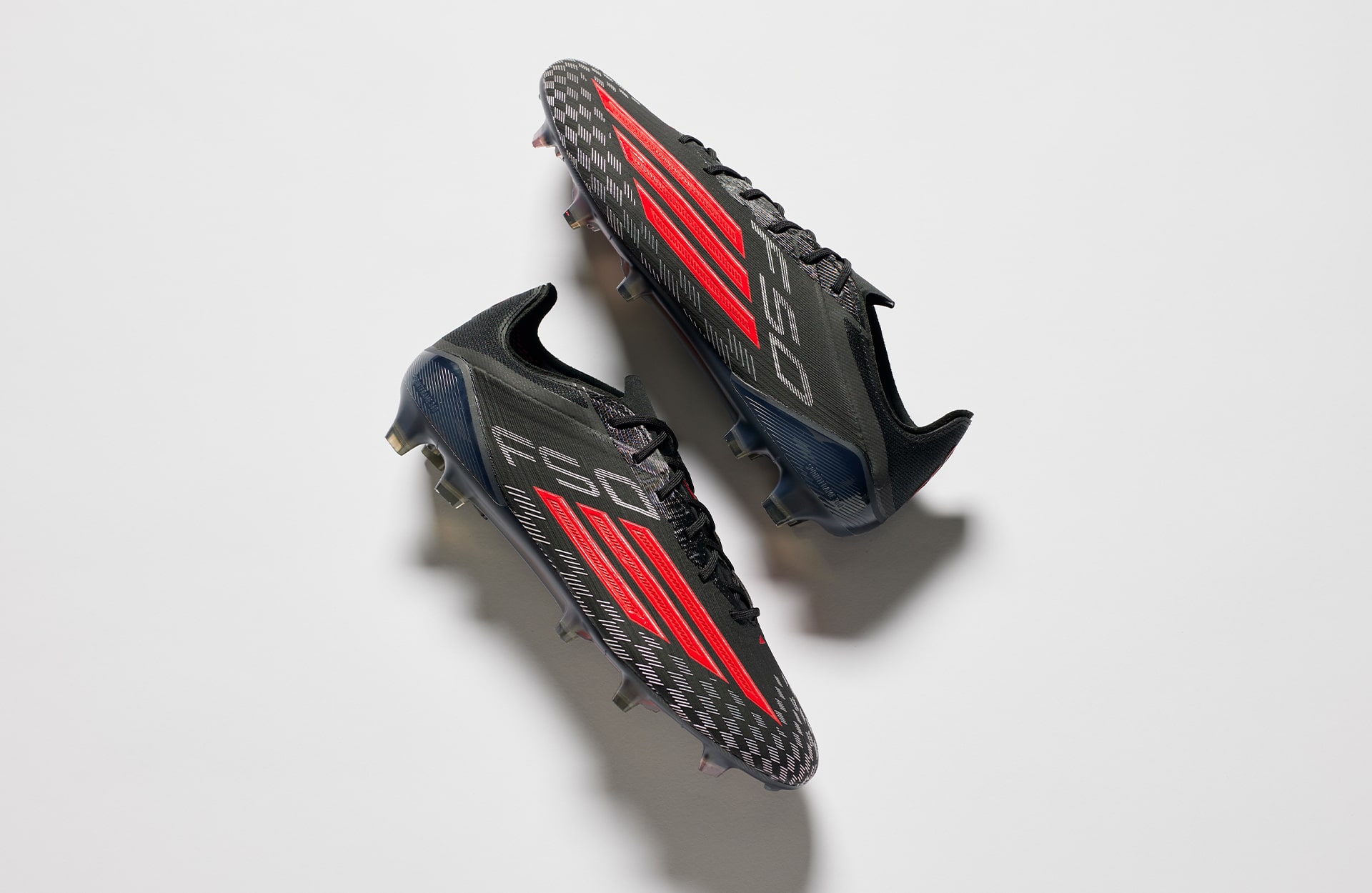 The adidas F50 ‘Immortal DNA’ boots take a slightly different route, but remain firmly on theme. A dominant black upper sets the foundation, while three bold red stripes sweep down both the medial and lateral sides, injecting energy and movement into the design.