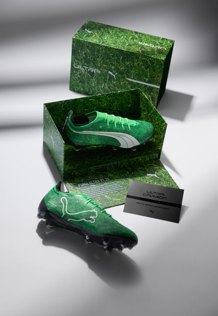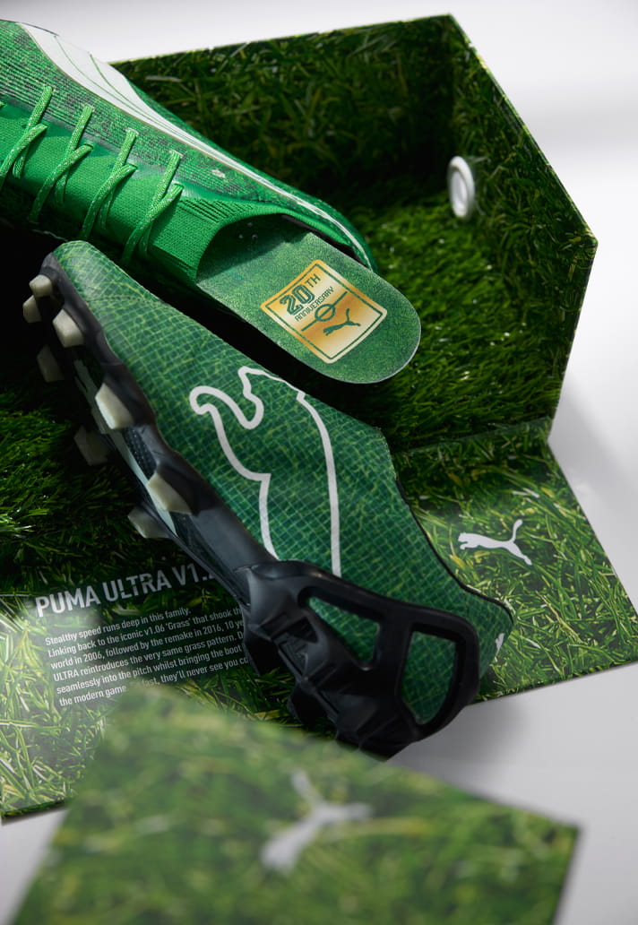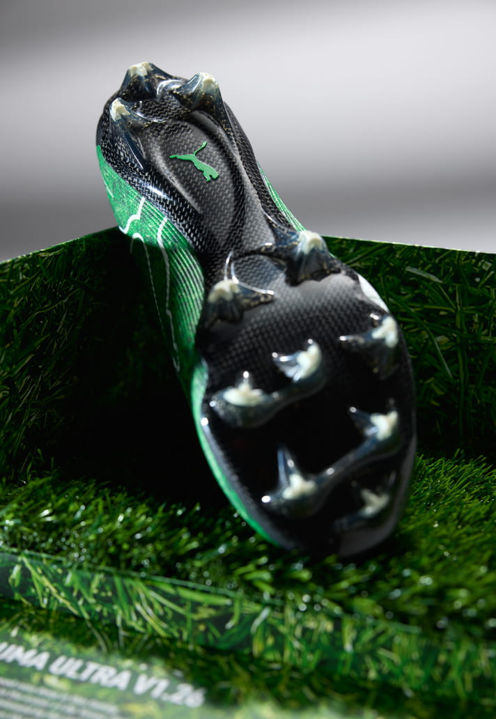Two decades ago, PUMA bucked trends with the V1.06 ‘Grass’ edition – a revolutionary boot both in terms of tech and aesthetics. Now, to celebrate the 20th anniversary of that release, the brand has revealed the Ultra 6 Carbon V1.26 'Grass' edition.