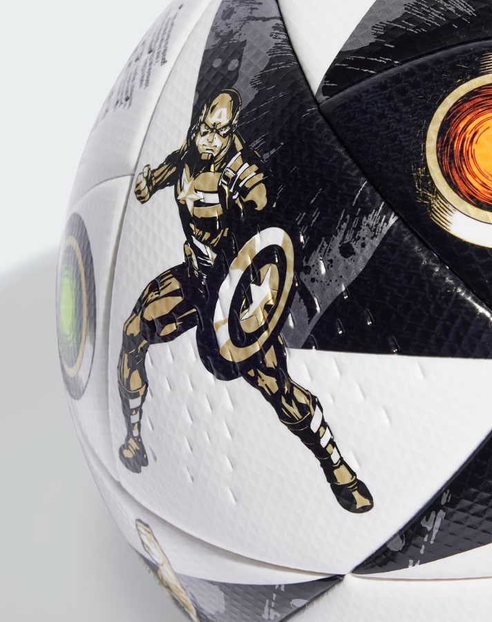 The official match ball features comic-accurate representations of all the original roster of The Avengers as presented in the Marvel Cinematic Universe. They’re presented in golden hues, playing out across the white base with further black elements. Tech-wise, this is the same model that's currently in use in the league, and it provides the highest level of accuracy and reliability on the field of play, due in part to its new panel shape and surface textures. Key features of its construction include the CTR-Core, an innovative core within the ball that is tuned to improve accuracy and consistency, supporting fast, precise play with maximum shape and air retention, and the SpeedShell, the ball’s polyurethane (PU) skin featuring micro and macro textures and a new 20-piece panel shape, which enhances aerodynamics to improve the accuracy, flight stability and swerve of shots.