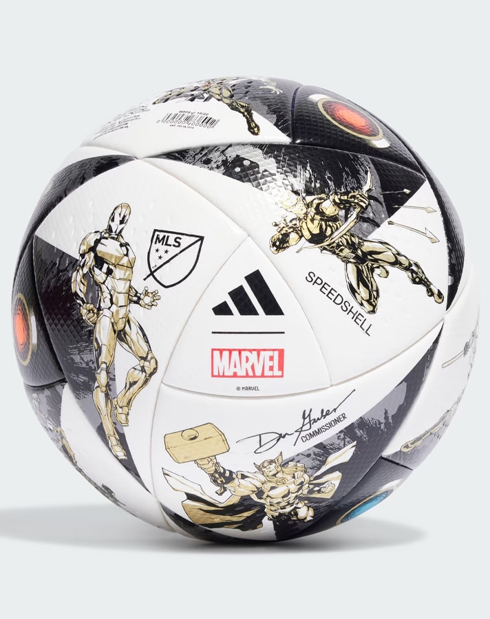 The balls are then supported by other Super Hero-inspired apparel, including an Avengers-inspired bespoke warm-up jacket and pants, all of which will be used during the MLS All-Star Game.