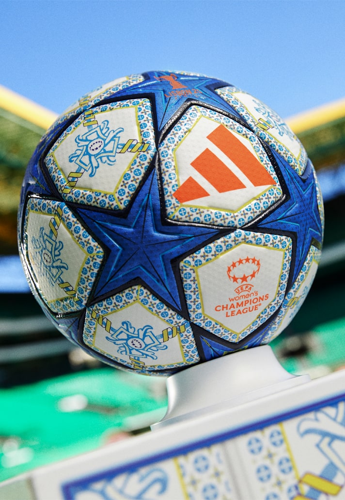 Ready to make its debut on 18 March for the quarterfinals, the new Women’s Champions League knockout ball is a fitting tribute to Lisbon, the host city for this season’s showpiece event in May. Draped in a striking white and blue base, accented with vibrant orange and yellow, the design takes inspiration from Portugal’s capital. The intricate star panel detailing is a nod to Lisbon’s famed “azulejos” – the iconic porcelain tiles that adorn its historic buildings. A perfect blend of tradition and innovation, this ball is primed for the biggest stage.