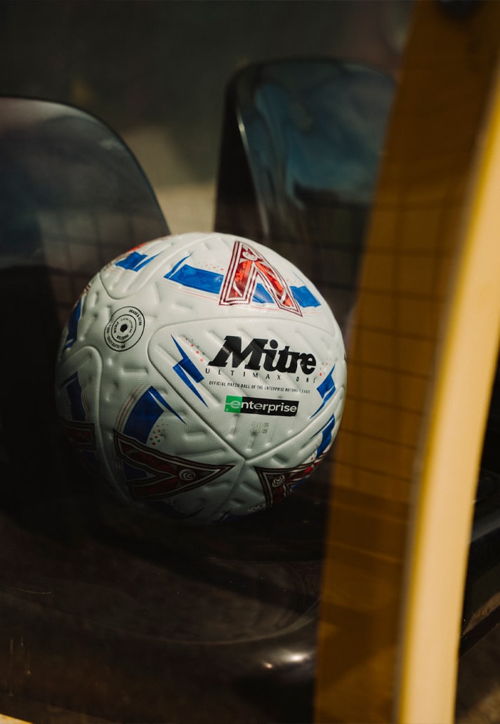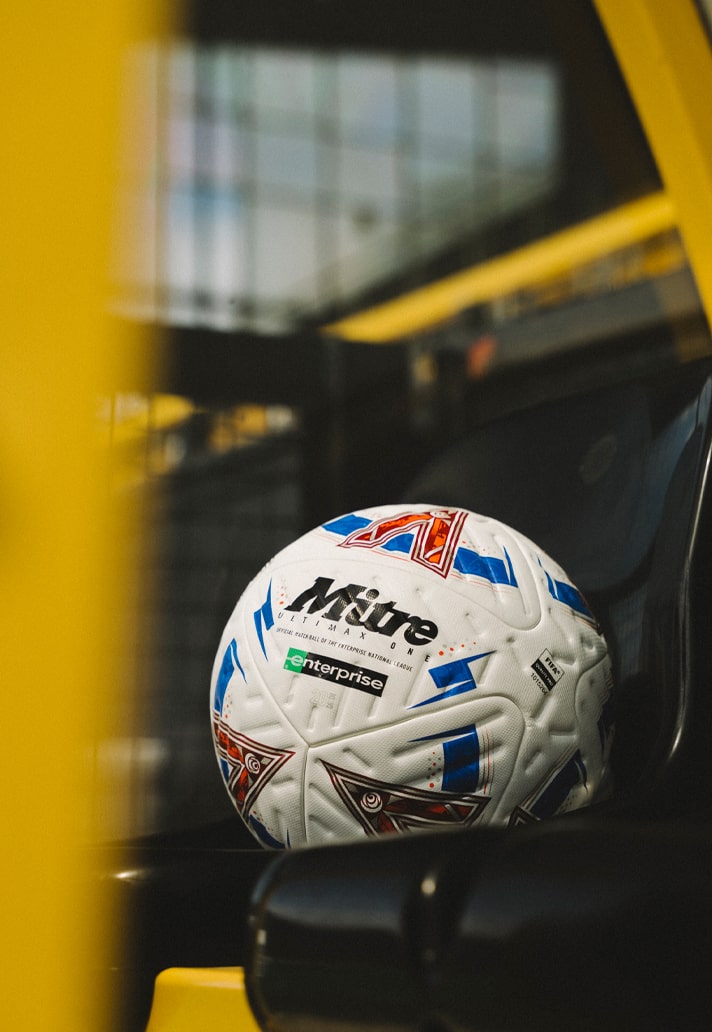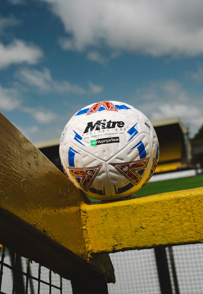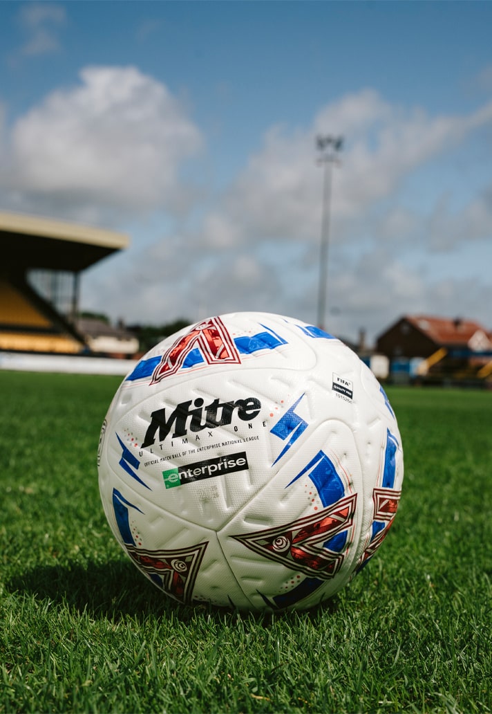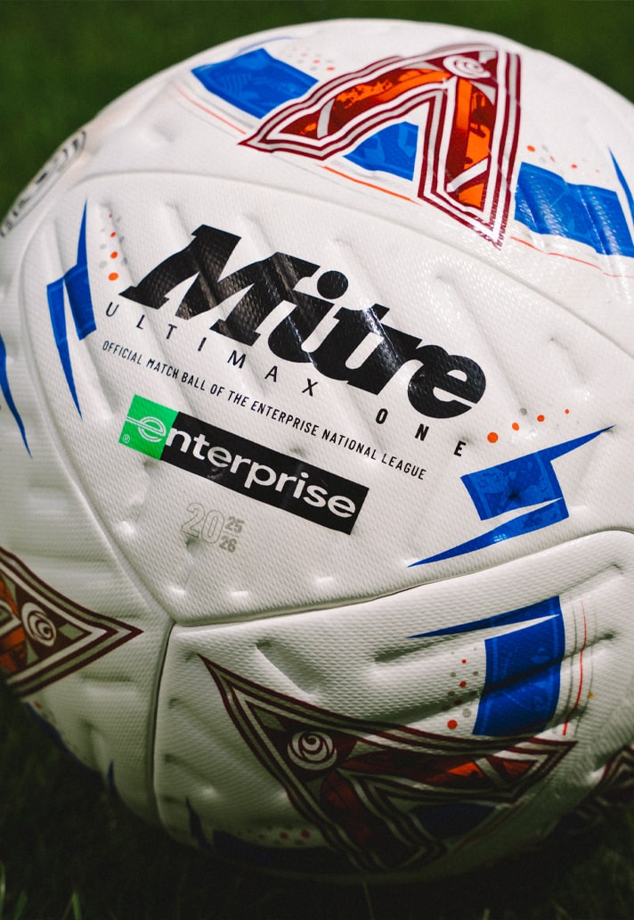 To celebrate the occasion, Mitre has unveiled a bespoke Ultimax design, a ball crafted not just for performance, but with purpose. Draped in a colour palette of deep blue, electric red, and silver, it’s an instant head-turner, proudly bearing the refreshed branding of The Enterprise National League. At its core sits the logo of new title sponsor, Enterprise, seamlessly integrated into the design — a symbol of the league’s ambitions moving forward.
