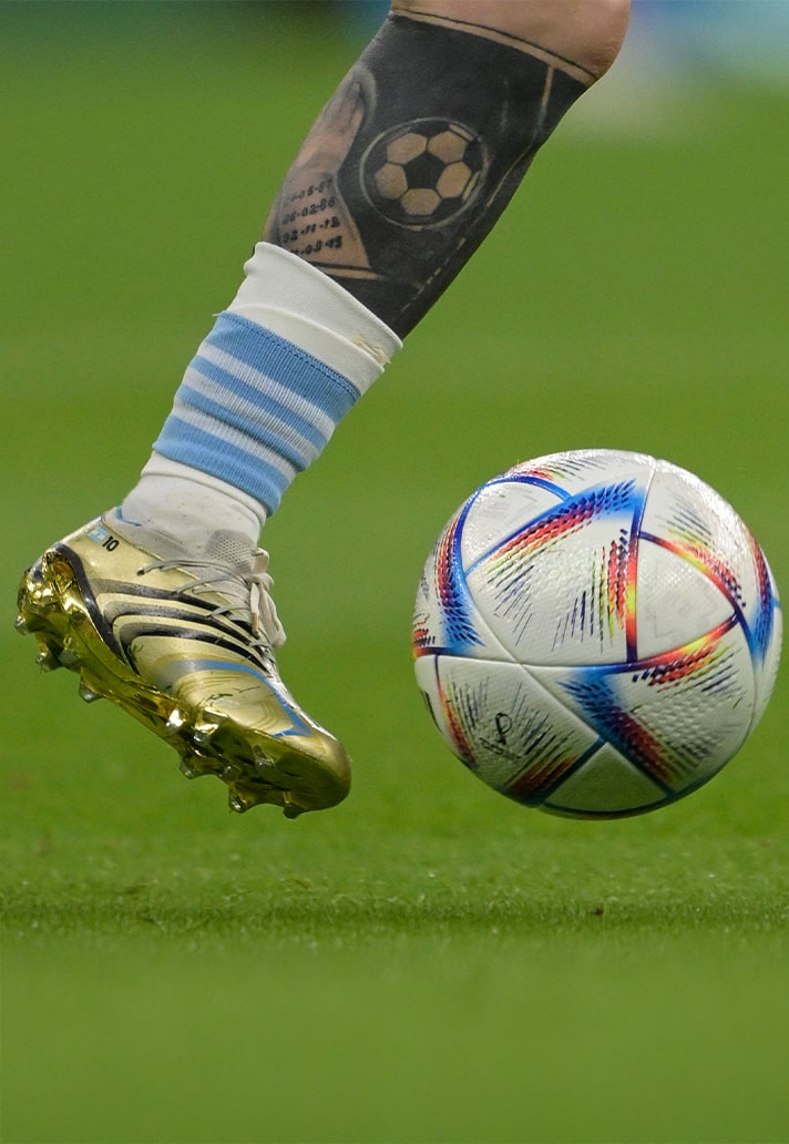 The 14th successive ball created by adidas for the World Cup, Al Rihla travelled faster in flight than any other in the tournament’s history. Meaning ‘the journey’ in Arabic, its bold, vibrant colours were inspired by Qatar’s culture, architecture, iconic boats and flag.