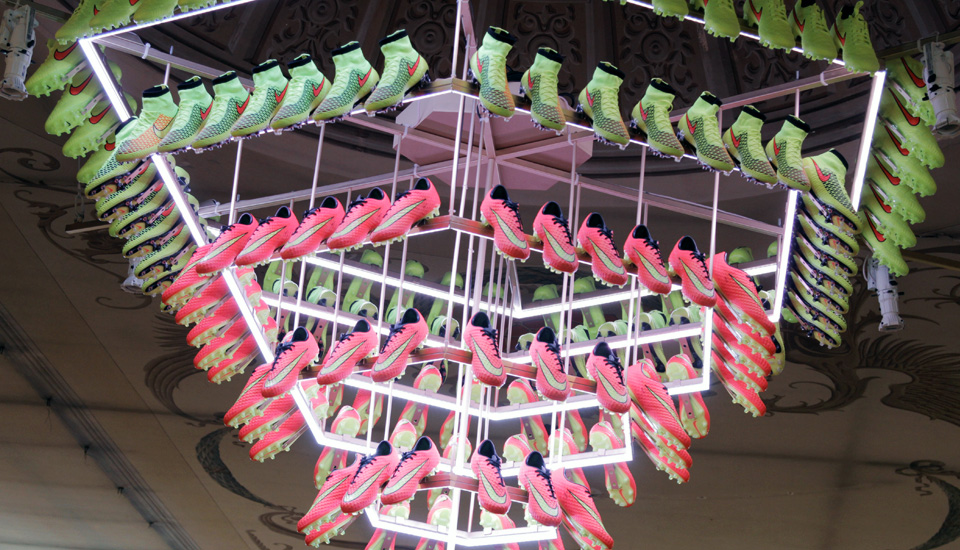 On the day before Nike's biggest boot launch of the year we've flown over to Madrid for a Swoosh takeover in the Spanish capital. With the world's media in attendance Nike took us through its entire collection of footwear, apparel and equipment innovation for players and fans, inspired by the upcoming World Cup Brasil.