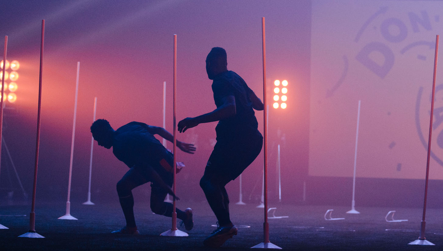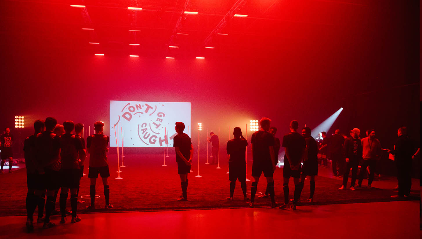 The Don’t Get Caught Challenge was a specially-constructed game zone designed by Umbro that threw together playground classic British Bulldogs, dodgeball and high-intensity football training drills in a challenge that would test any player. A ruthless one hit rule saw players tumble out from the very first whistle as Umbro pushed the players with reaction and multi-directional speed drills.