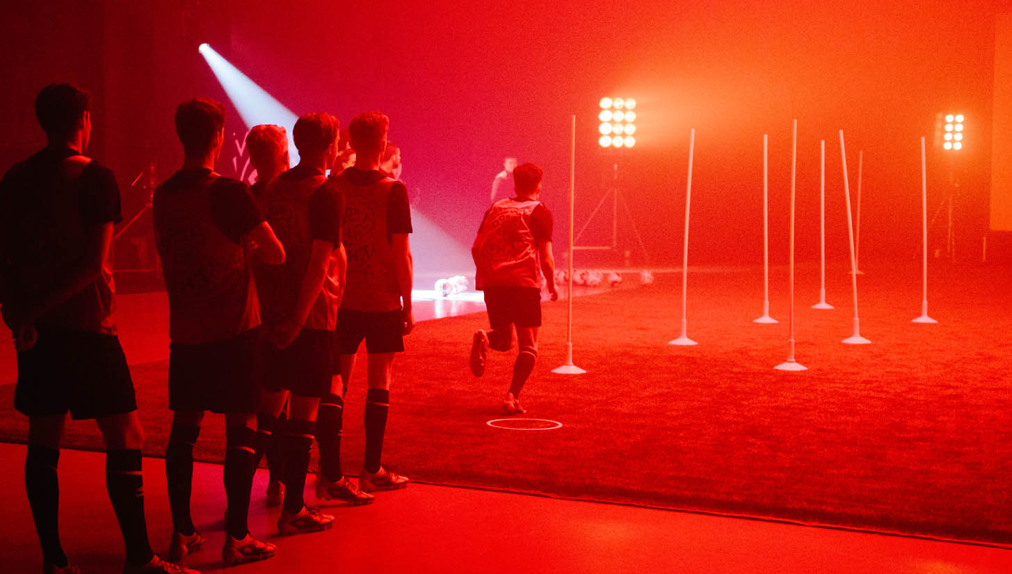 The launch of the third generation Velocita saw Umbro turn up the tempo for a showcase of speed. The Double Diamond and new recruit Michail Antonio rolled out the red carpet and fired footballs at those who walked down it in a twisted test of agility and acceleration. Have a go, by all means. Just don't get caught.